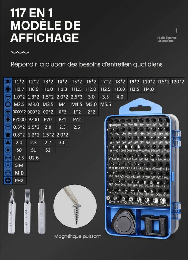 Hexagone: 1/16, 5/64, 3/32, 7/64, 1/8, 9/64 et 5/32