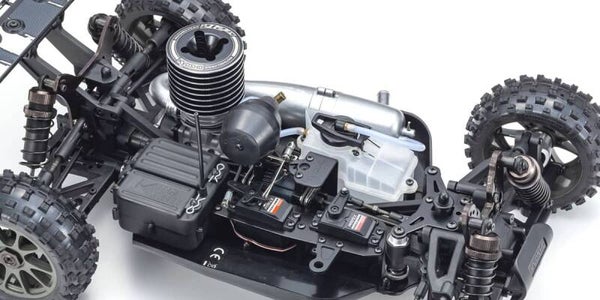Le Buggy Kyosho Inferno Neo 3.0 est readyset, vendu prêt à rouler. Il suffit d'installer des batteries dans l'émetteur et le récepteur, remplir le réservoir de carburant pour pouvoir rouler !